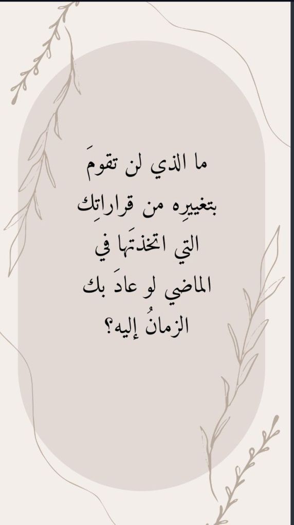 جانفي 28, 2024فيفري 1, 2024 Sufism24/7 ما الذي لن تقومَ بتغييرِه من قراراتِك التي اتخذتَها في الماضي لو عادَ بك الزمانُ إليه؟ شارك هذا الموضوع: النقر للمشاركة على X (فتح في نافذة جديدة) X انقر للمشاركة على فيسبوك (فتح في نافذة جديدة) فيس بوك إعجاب تحميل... مرتبط
