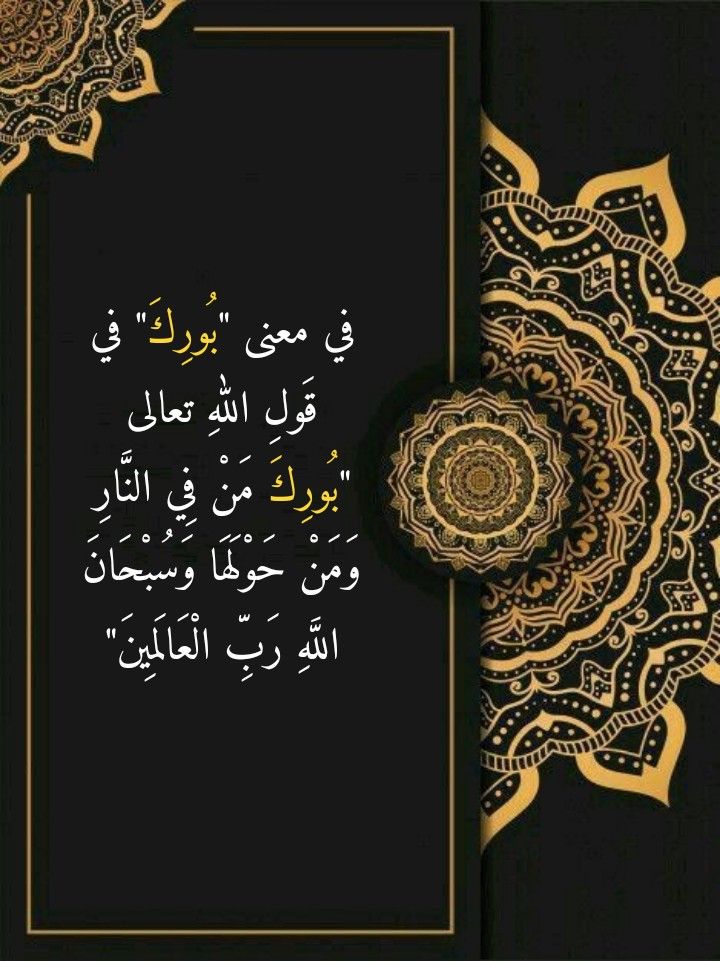 نقرأُ في سورةِ النمل، وفي الآيتَين الكريمتَين 7- 8 منها، قَولَ اللهِ تعالى: (إِذْ قَالَ مُوسَى لِأَهْلِهِ إِنِّي آنَسْتُ نَارًا سَآتِيكُمْ مِنْهَا بِخَبَرٍ أَوْ آتِيكُمْ بِشِهَابٍ قَبَسٍ لَعَلَّكُمْ تَصْطَلُونَ. فَلَمَّا جَاءَهَا نُودِيَ أَنْ بُورِكَ مَنْ فِي النَّارِ وَمَنْ حَوْلَهَا وَسُبْحَانَ اللَّهِ رَبِّ الْعَالَمِينَ). فما هو معنى “بُورِكَ” في قَولِ اللهِ تعالى “بُورِكَ مَنْ فِي النَّارِ وَمَنْ حَوْلَهَا وَسُبْحَانَ اللَّهِ رَبِّ الْعَالَمِينَ”؟