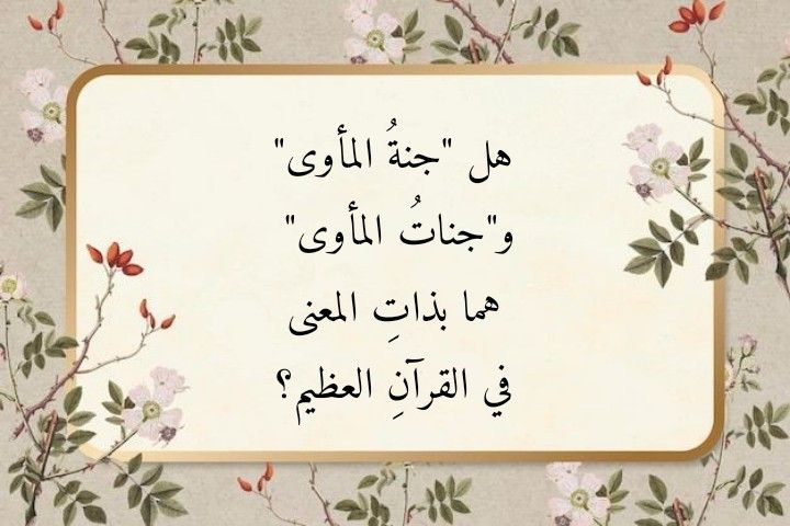من خصائصِ لسانِ القرآنِ العظيم أنَّ تطابقَ كلمتَين قرآنيتَين في مبناهما لا يلزمُ عنه بالضرورة وجوبُ أن تتطابقا في المعنى. فالمقاربةُ القاموسيةُ لقرآنِ اللهِ العظيم تخفقُ أحياناً كثيرة في تبيُّنِ المعنى الذي تنطوي عليه كلمةٌ قرآنيةٌ يتماهى مبناها مع مبنى كلمةٍ قرآنيةٍ أخرى. ومن ذلك ما ذهبَ إليه البعض من أنَّ “جنةَ المأوى” في سورةِ النجم لها ذاتُ المعنى الذي تنطوي عليه “جناتُ المأوى” في سورةِ السجدة! فـ “جنةُ المأوى” في قولِ اللهِ تعالى: (وَلَقَدْ رَآهُ نَزْلَةً أُخْرَى.عِنْدَ سِدْرَةِ الْمُنْتَهَى. عِنْدَهَا جَنَّةُ الْمَأْوَى) (13- 15 النجم) هي جنةٌ خلقَها اللهُ تعالى في هذه الحياةِ الدنيا لتكون مأوى ملائكتِه المقرَّبين ومن شاءَ من عبادِه الذين اصطفى ومنهم الذين قُتلوا في سبيلِه: (وَلَا تَحْسَبَنَّ الَّذِينَ قُتِلُوا فِي سَبِيلِ اللَّهِ أَمْوَاتًا بَلْ أَحْيَاءٌ عِنْدَ رَبِّهِمْ يُرْزَقُون) (169 آل عمران)، (وَالشُّهَدَاءُ عِنْدَ رَبِّهِمْ لَهُمْ أَجْرُهُمْ وَنُورُهُمْ) (من 19 الحديد).
