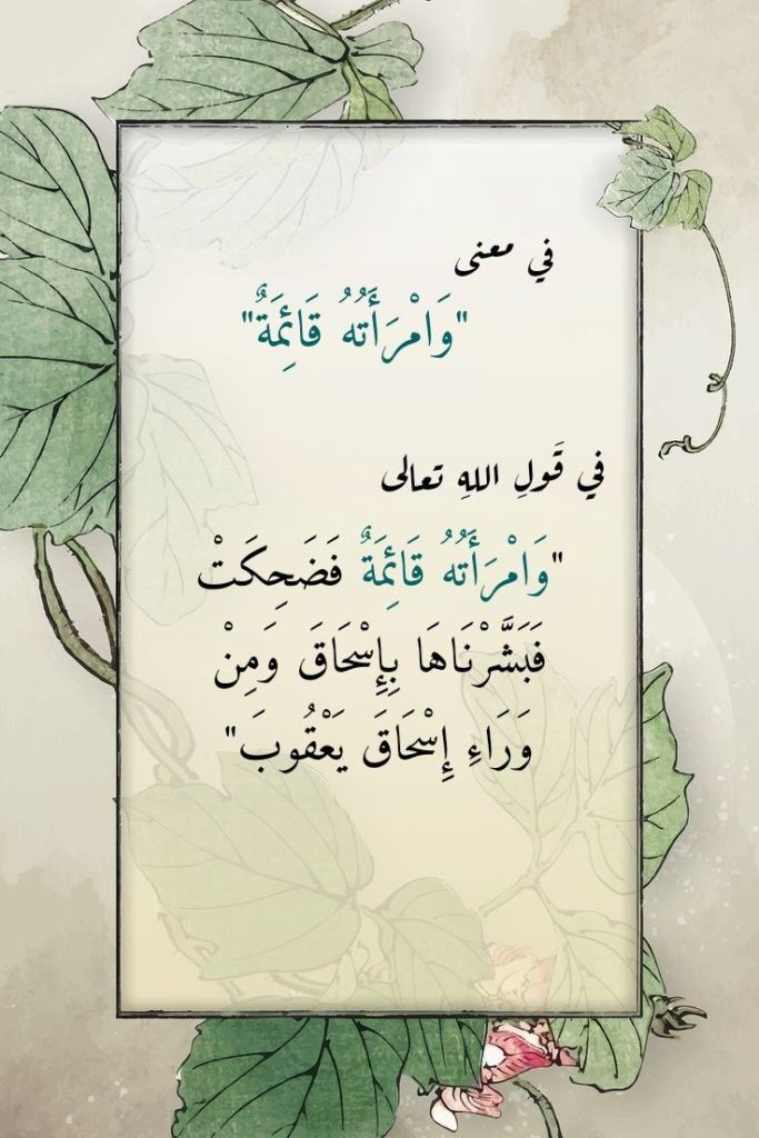 نقرأُ في سورةِ هود، وفي الآياتِ الكريمةِ 69- 71 منها، قَولَ اللهِ تعالى: (وَلَقَدْ جَاءَتْ رُسُلُنَا إِبْرَاهِيمَ بِالْبُشْرَى قَالُوا سَلَامًا قَالَ سَلَامٌ فَمَا لَبِثَ أَنْ جَاءَ بِعِجْلٍ حَنِيذٍ. فَلَمَّا رَأَى أَيْدِيَهُمْ لَا تَصِلُ إِلَيْهِ نَكِرَهُمْ وَأَوْجَسَ مِنْهُمْ خِيفَةً قَالُوا لَا تَخَفْ إِنَّا أُرْسِلْنَا إِلَى قَوْمِ لُوطٍ. وَامْرَأَتُهُ قَائِمَةٌ فَضَحِكَتْ فَبَشَّرْنَاهَا بِإِسْحَاقَ وَمِنْ وَرَاءِ إِسْحَاقَ يَعْقُوبَ). فما هو معنى “وَامْرَأَتُهُ قَائِمَةٌ” في قَولِ اللهِ تعالى هذا؟