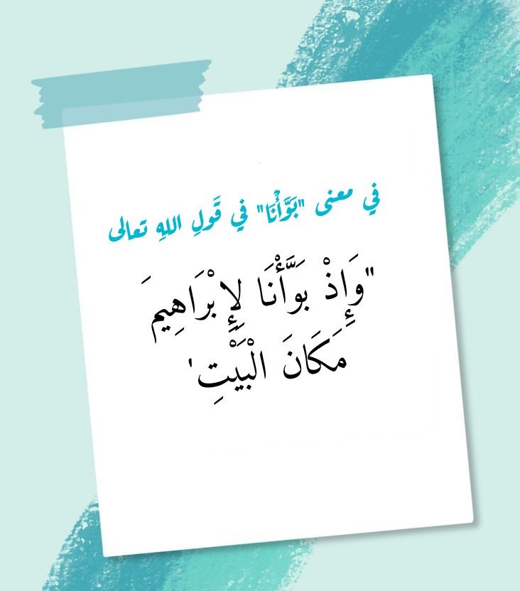 يُعينُ على تبيُّنِ معنى كلمةِ “بَوَّأْنَا” في هذه الآيةِ الكريمة أن نستذكرَ الحقيقةَ القرآنيةَ التي يُجلِّيها لنا تدبُّرُ قولِ اللهِ تعالى (إِنَّ أَوَّلَ بَيْتٍ وُضِعَ لِلنَّاسِ لَلَّذِي بِبَكَّةَ مُبَارَكًا وَهُدًى لِلْعَالَمِينَ) (96 آل عِمران). فأولُ بيتٍ وضعَه اللهُ تعالى للناسِ كان بيتَه العتيق ببكة. فبكةُ كانت الموضعَ من الأرض الذي أُهبِطَ إليه آدمُ أبو البشر. ولقد تعاقبت على ذلك البيتِ العتيق حُقَبٌ وعصورٌ انصرفَ الناسُ عنه خلالها، وذلك من بعد اتِّخاذِهم آلهةً أخرى في بقاعٍ أخرى غيرِ واديه الذي أصبح غيرَ ذي زرع. ثم إنَّ اللهَ تعالى أمرَ خليلَه إبراهيم بالقدومِ إلى هذا الوادي، غيرِ ذي الزرع، وذلك ليرفعَ، هو وابنُه إسماعيل، قواعدَ البيتِ العتيقِ من جديد من بعد أن بوَّأ له مكان هذا البيت الذي طمرَته رمالُ الزمان فتوارى عن الأنظارِ حتى قيَّضَ اللهُ تعالى له إبراهيمَ وإسماعيل ليرفعا قواعدَه من جديد.