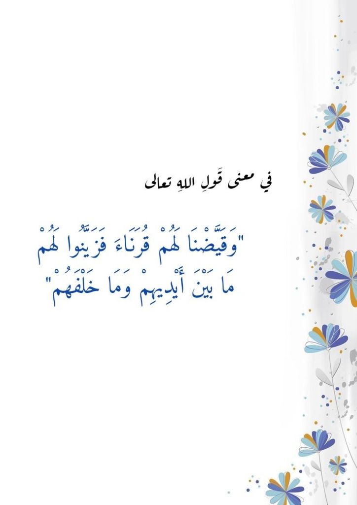 في معنى قَولِ اللهِ تعالى “وَقَيَّضْنَا لَهُمْ قُرَنَاءَ فَزَيَّنُوا لَهُمْ مَا بَيْنَ أَيْدِيهِمْ وَمَا خَلْفَهُمْ”