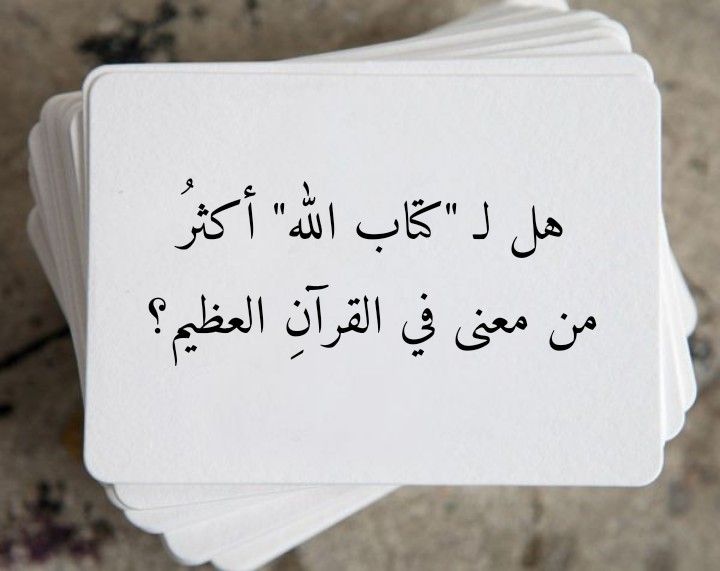 لـ “كتابِ الله” أكثرُ من معنى في القرآنِ العظيم. فالعبارةُ القرآنيةُ الجليلة “كتابُ الله” تردُ أحياناً بمعنى “القرآنِ العظيم”: