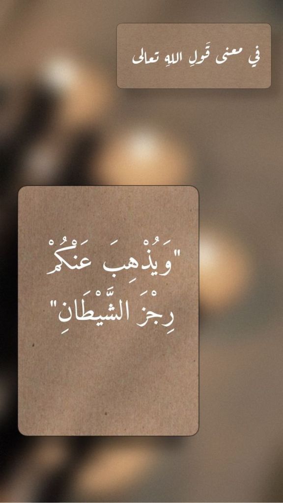 نقرأُ في سورةِ الأنفال، وفي الآيةِ الكريمة 8 منها، قولَ اللهِ تعالى (إِذْ يُغَشِّيكُمُ النُّعَاسَ أَمَنَةً مِنْهُ وَيُنَزِّلُ عَلَيْكُمْ مِنَ السَّمَاءِ مَاءً لِيُطَهِّرَكُمْ بِهِ وَيُذْهِبَ عَنْكُمْ رِجْزَ الشَّيْطَانِ وَلِيَرْبِطَ عَلَى قُلُوبِكُمْ وَيُثَبِّتَ بِهِ الْأَقْدَامَ). فما هو معنى “وَيُذْهِبَ عَنْكُمْ رِجْزَ الشَّيْطَانِ”؟