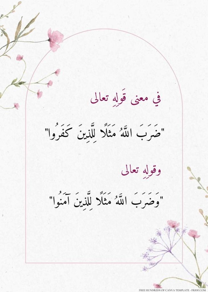 نقرأُ في سورةِ التحريم، وفي الآياتِ الكريمةِ 10- 12 منها، قولَ اللهِ تعالى: (ضَرَبَ ٱللَّهُ مَثَلٗا لِّلَّذِينَ كَفَرُواْ ٱمۡرَأَتَ نُوحٖ وَٱمۡرَأَتَ لُوطٖۖ كَانَتَا تَحۡتَ عَبۡدَيۡنِ مِنۡ عِبَادِنَا صَٰلِحَيۡنِ فَخَانَتَاهُمَا فَلَمۡ يُغۡنِيَا عَنۡهُمَا مِنَ ٱللَّهِ شَيۡـٔٗا وَقِيلَ ٱدۡخُلَا ٱلنَّارَ مَعَ ٱلدَّٰاخِلِينَ. وَضَرَبَ ٱللَّهُ مَثَلٗا لِّلَّذِينَ ءَامَنُواْ ٱمۡرَأَتَ فِرۡعَوۡنَ إِذۡ قَالَتۡ رَبِّ ٱبۡنِ لِي عِندَكَ بَيۡتٗا فِي ٱلۡجَنَّةِ وَنَجِّنِي مِن فِرۡعَوۡنَ وَعَمَلِهِۦ وَنَجِّنِي مِنَ ٱلۡقَوۡمِ ٱلظَّٰلِمِينَ. وَمَرۡيَمَ ٱبۡنَتَ عِمۡرَٰنَ ٱلَّتِيٓ أَحۡصَنَتۡ فَرۡجَهَا فَنَفَخۡنَا فِيهِ مِن رُّوحِنَا وَصَدَّقَتۡ بِكَلِمَٰتِ رَبِّهَا وَكُتُبِهِۦ وَكَانَتۡ مِنَ ٱلۡقَٰنِتِينَ). فما هو معنى قَولِ اللهِ تعالى “ضَرَبَ اللَّهُ مَثَلًا لِلَّذِينَ كَفَرُوا” وقولِه تعالى “وَضَرَبَ اللَّهُ مَثَلًا لِلَّذِينَ آمَنُوا”؟