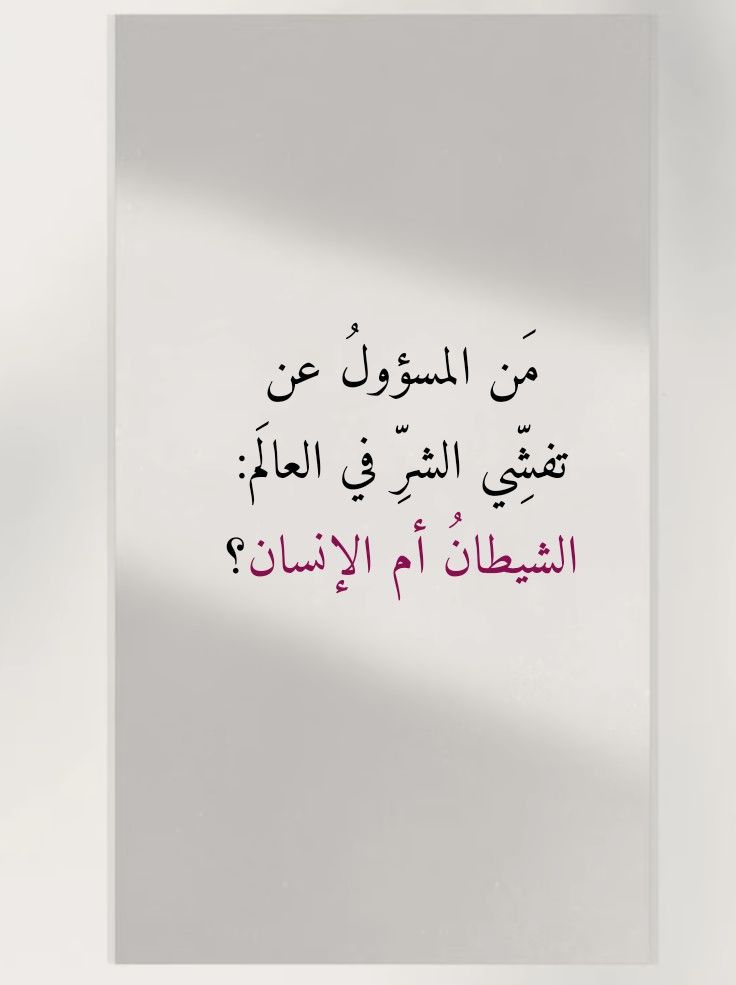 يظنُّ كثيرٌ من الناسِ أنَّ الشيطانَ هو أصلُ الشرِّ ومصدرُه، وأنَّ الإنسانَ غيرُ ملومٍ على ما جنته يداه من شرٍّ دعاه الشيطانُ إلى اقترافِه! وهذا ظنٌّ تفنِّدُه وتدحضُه الحقيقةُ القرآنيةُ التي مفادُها ما بوسعِنا أن نتبيَّنَه بتدبُّرِ الآيةِ الكريمة (وَقَالَ الشَّيْطَانُ لَمَّا قُضِيَ الْأَمْرُ إِنَّ اللَّهَ وَعَدَكُمْ وَعْدَ الْحَقِّ وَوَعَدْتُكُمْ فَأَخْلَفْتُكُمْ وَمَا كَانَ لِي عَلَيْكُمْ مِنْ سُلْطَانٍ إِلَّا أَنْ دَعَوْتُكُمْ فَاسْتَجَبْتُمْ لِي فَلَا تَلُومُونِي وَلُومُوا أَنْفُسَكُمْ) (من 22 إبراهيم). فاللهُ تعالى ما كان ليخلِّدَ في نارِ جهنمَ الكفارَ والمنافقين لو أنَّ الشيطانَ كان هو الملومَ على ما جنته أيديهم من سوء. فعلةُ خلودِ الإنسانِ في جهنم تعودُ إلى ما جنته يداه بإعراضِه عن اتِّباعِ هَدي الله وإيثارِه الإصغاءَ لنزغِ الشيطانِ ولما تدعوه إليه نفسُه ويُزيِّنُه له هواه.
