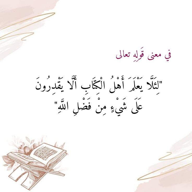 نقرأُ في سورةِ الحديد، وفي الآيتَين الكريمتَين 28- 29 منها، قَولَ اللهِ تعالى: (يَا أَيُّهَا الَّذِينَ آمَنُوا اتَّقُوا اللَّهَ وَآمِنُوا بِرَسُولِهِ يُؤْتِكُمْ كِفْلَيْنِ مِنْ رَحْمَتِهِ وَيَجْعَلْ لَكُمْ نُورًا تَمْشُونَ بِهِ وَيَغْفِرْ لَكُمْ وَاللَّهُ غَفُورٌ رَحِيمٌ. لِّئَلَّا يَعْلَمَ أَهْلُ الْكِتَابِ أَلَّا يَقْدِرُونَ عَلَىٰ شَيْءٍ مِّن فَضْلِ اللَّهِ وَأَنَّ الْفَضْلَ بِيَدِ اللَّهِ يُؤْتِيهِ مَن يَشَاءُ وَاللَّهُ ذُو الْفَضْلِ الْعَظِيمِ).