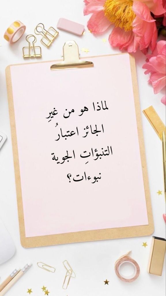 وبذلك يكونُ علمُ التنبؤ بالأحوالِ الجوية هو ليس مما يندرجُ ضمن ما اختصَّ اللهُ تعالى به نفسَه من علمٍ بالغيب، وذلك طالما كانت القوانينُ والأسبابُ التي تُعينُ على تبيُّنِ مآلاتِ الأنواءِ الجوية هي مما يسَّرَ اللهُ تعالى للإنسانِ أن يتوصَّلَ إليه بعقلِه. ولذلك فإن من غيرِ الجائزِ الزعمُ بأنَّ هذه التنبؤات هي نبوءات. فالنبوءات هي معجزاتٌ ليس لعقلِ الإنسانِ عليها من سلطانٍ يتيحُ له أن يجترحَها أنَّى يشاء! فكلُّ ما بوسعِ الإنسانِ أن يتبيَّنَه بعقلِه من أسرارِ هذا الكون هو ليس من العلمِ بالغيبِ في شيء؛ هذا العلمُ الذي اختصَّ اللهُ تعالى به نفسَه فلم يجعل لإحاطةِ العقلِ بهذه القوانينِ والأسباب ما يمكِّنُه من تبيُّنِ وقائعِ المستقبلِ وأحداثِه إلا ما كان منها مسبَّبٌ له بهذه القوانينِ والأسباب.