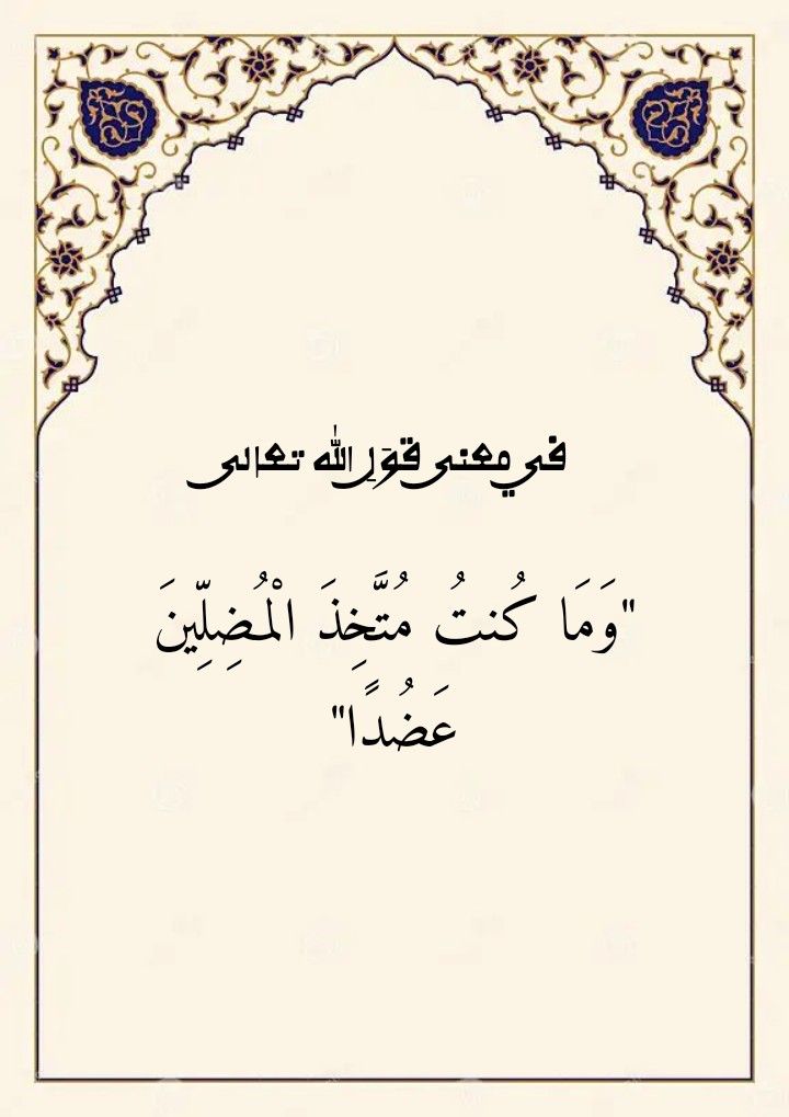 نقرأُ في سورةِ الكهف، وفي الآيةِ الكريمة 51 منها، قَولَ اللهِ تعالى: (مَا أَشْهَدْتُهُمْ خَلْقَ السَّمَاوَاتِ وَالْأَرْضِ وَلَا خَلْقَ أَنْفُسِهِمْ وَمَا كُنْتُ مُتَّخِذَ الْمُضِلِّينَ عَضُدًا). فما هو معنى “وَمَا كُنْتُ مُتَّخِذَ الْمُضِلِّينَ عَضُدًا” في هذه الآيةِ الكريمة؟