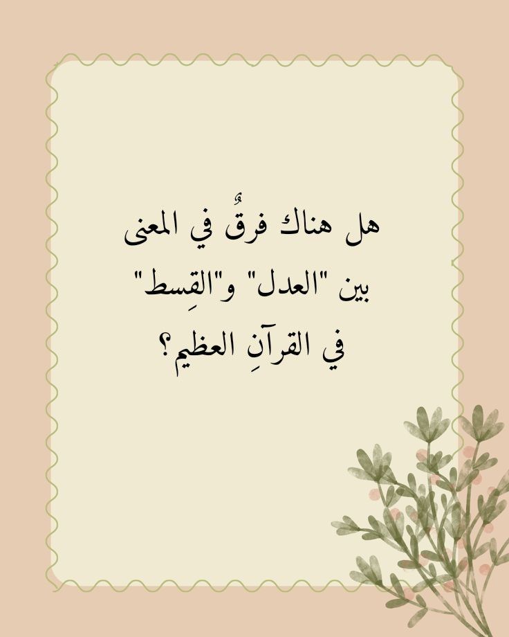 هل هناك فرقٌ في المعنى بين “العدل” و”القسط” في القرآنِ العظيم؟