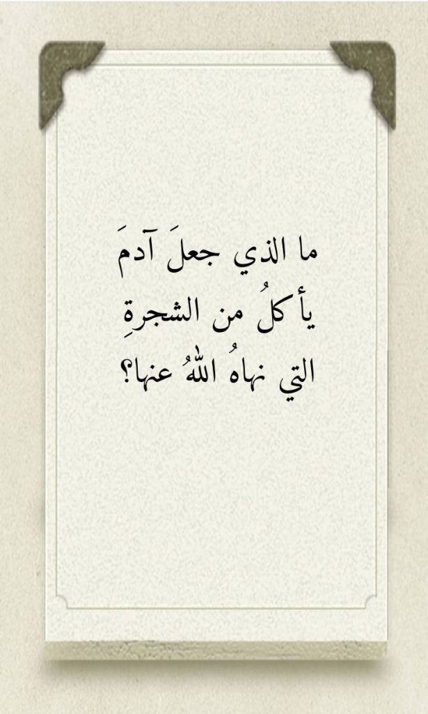 فآدمُ إذاً هو المسؤولُ الأولُ والأخير عما كان منه إذ أكلَ من الشجرةِ التي نهاه اللهُ عنها. ويحقُّ لنا الآن أن نسأل: ما الذي جعلَ آدمَ يأكلُ من الشجرةِ التي نهاهُ اللهُ عنها؟