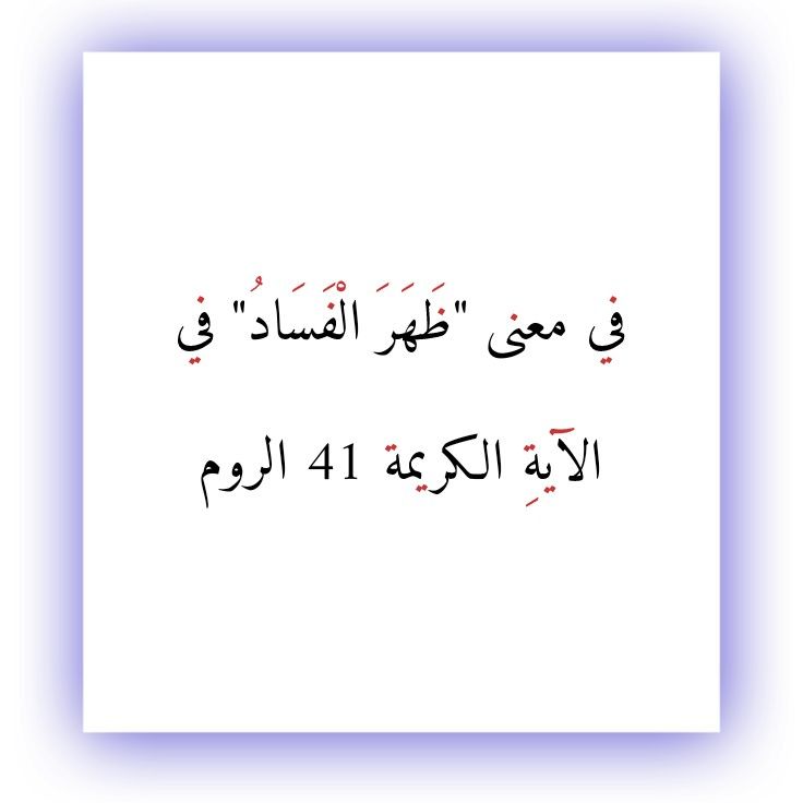 نقرأُ في سورةِ الروم، وفي الآيةِ الكريمة 41 منها، قولَ اللهِ تعالى: (ظَهَرَ الْفَسَادُ فِي الْبَرِّ وَالْبَحْرِ بِمَا كَسَبَتْ أَيْدِي النَّاسِ).