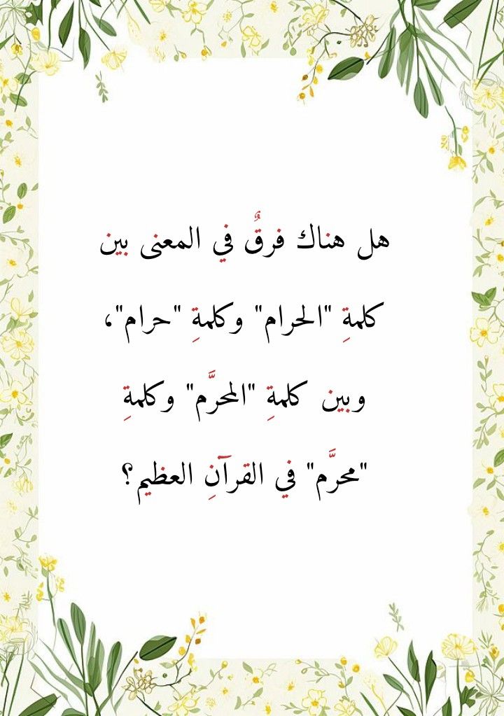 وكلمةُ “الحرام” هنا هي ليست ذاتَها كلمة “حرام” التي وردت في القرآنِ العظيم، وذلك من بعد أن نضيفَ إليها ألف لام التعريف. لنتدبَّر الآياتِ الكريمةَ التالية: