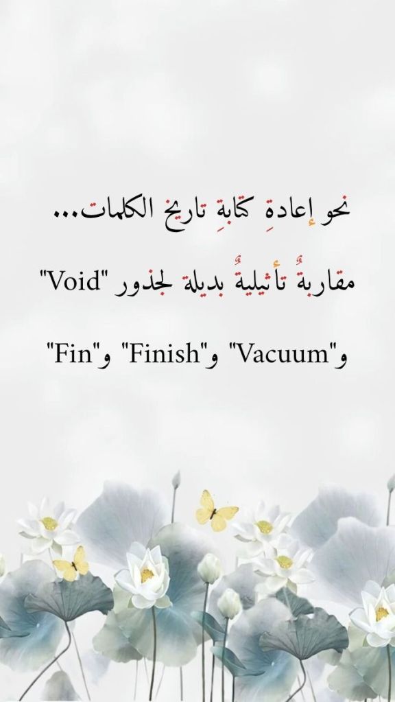 لكن هذه المقاربة تُغفل احتمالات جدّية لوجود امتدادات أقدم وأبعد، تتصل بجذور لغات وحضارات أخرى، وفي مقدمتها العربية التي هي من أقدم اللغات الحيّة والمحفوظة في سجل النصوص. هنا، سنستقصي أربعة ألفاظ أوروبية – Void، Vacuum، Finish، وFin – في ضوء قراءة تأثيلية جديدة لا تقف عند خط النهاية الأوروبي، بل تواصل المسير إلى عمق أزمنة ما قبل الهندو-أوروبية.