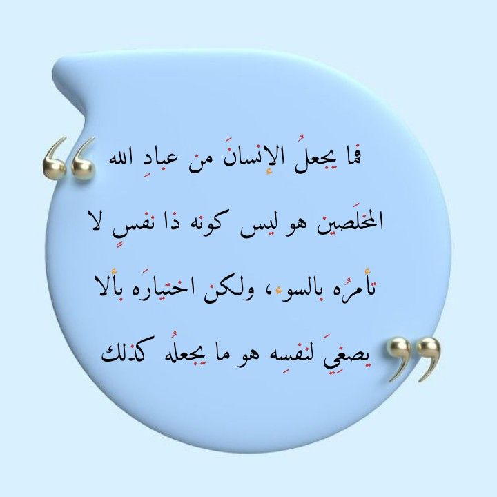 ولذلك قالت امرأةُ العزيز ما حفظته لنا سورةُ يوسف بالكلماتِ القرآنيةِ التالية: (وَمَا أُبَرِّئُ نَفْسِي إِنَّ النَّفْسَ لَأَمَّارَةٌ بِالسُّوءِ إِلَّا مَا رَحِمَ رَبِّي) (من 53 يوسف). فما قالته امرأةُ العزيز حكمةٌ بالغة لا تصدر إلا عن قلبٍ فوَّضَ أمرَه إلى الله، وعقلٍ أقرَّ بأن لا إلهَ سواه. وهي كلماتٌ تنطوي على نصيحةٍ وموعظة لا يتَّعظ بهما إلا ذو حظٍّ عظيم. فالنفسُ، كلُّ نفسٍ، لا تملك غير أن تكونَ “أمارةً بالسوء”. ولنمعن النظرَ قليلاً في هذا التوصيفِ الدقيق؛ فالنفسُ ليست “آمرةً” بالسوءِ فحسب، ولكنها “أمارةٌ” بالسوء، طالما كانت عاجزةً عن أن تأمرَ بغيرِه. وهذا قولٌ لا يصدرُ إلا عمَّن خبرَ النفسَ وأحاطَ بما تشتملُ عليه من شرٍّ وسوء.