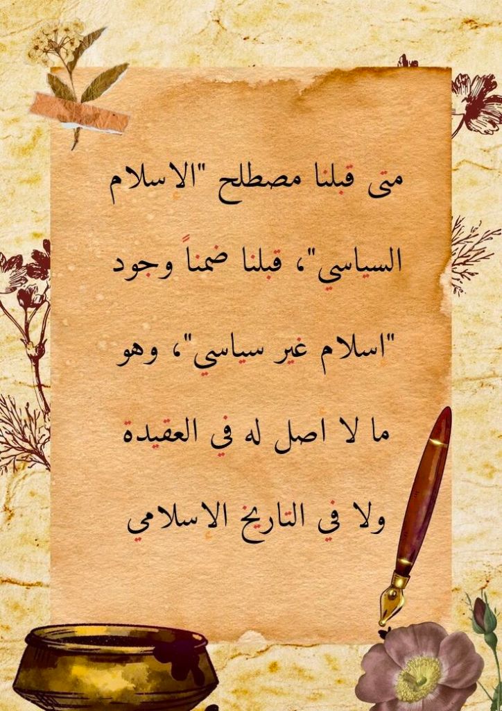 الإسلام إذن ليس “سياسيًا” ولا “ثقافيًا” ولا “اجتماعيًا”؛ إنه كلّ الوجود حين يُسلَّم لله. ومن ابتغى غير هذا التعريف فقد ضيّع البوصلة، وجعل من الدين وسيلةً بعد أن كان غايةً، ومن النور شعارًا بعد أن كان حقيقة. فاللغة ليست بريئة: متى قبلنا مصطلح “الإسلام السياسي”، قبلنا ضمناً وجود “إسلام غير سياسي”، وهو ما لا أصل له في العقيدة ولا في التاريخ الإسلامي.