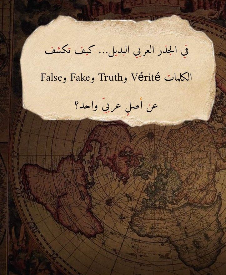 تقف المدرسة التأثيلية الهندو–أوروبية عند حدودٍ صوتية ضيقة، وتعتبر أنّ الكلمات الأوروبية الكبرى – ومنها vérité، truth، fake، false – تطوّرت داخل العائلة اللغوية نفسها دون وجود طبقة لغوية أسبق. غير أنّ التدقيق التأثيلي يكشف عن مسارٍ آخر، أعمق زمنًا وأكثر اتساقًا: مسارٌ عربي لا يزال حضوره يتجلى واضحاً في الكلمات الأوروبية المعاصرة.