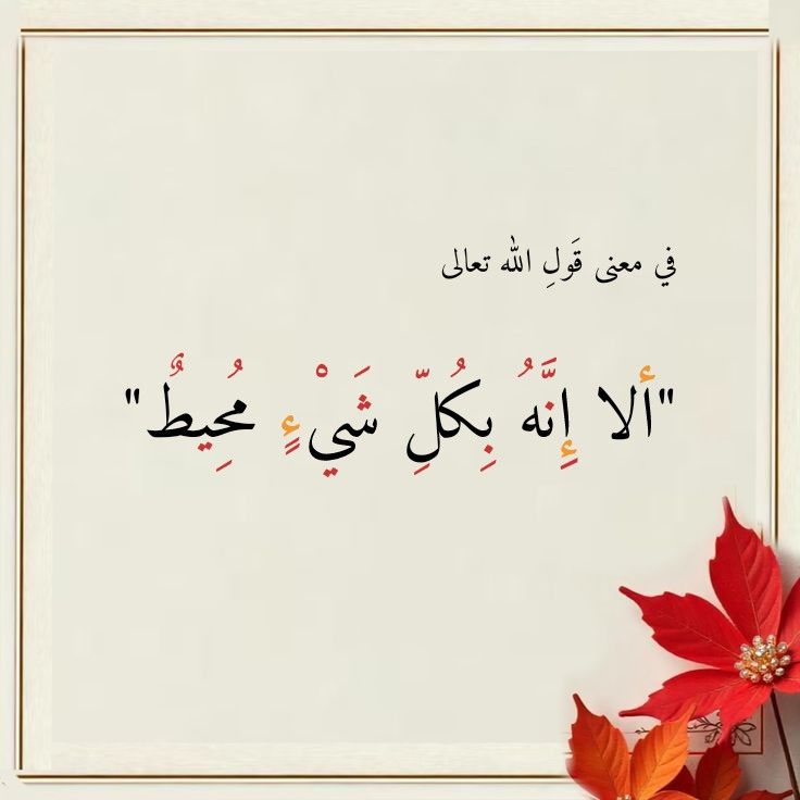 إنَّ ما تقدَّم يوفر الخلفيةَ المناسبة لفهمِ المعنى الذي ينطوي عليه قولُ اللهِ تعالى “ألا إِنَّهُ بِكُلِّ شَيْءٍ مُحِيطٌ” (من 54 فصلت). فاللهُ وحده هو الذي بمقدورِه أن يحيطَ عِلماً بكلِّ شيء، وهو وحده الذي لا يغيب عنه أيُّ شيء، ولذلك فهو وحده الذي ليس لأفعالِه آثارٌ جانبية لم تكن في حسبانِه. فإحاطةُ اللهِ تعالى بكلِّ شيء هي العلةُ من وراء انتظامِ الكون بسمواتِه وأرضِه، وبكلِّ ما فيهما من موجوداتٍ يشهد ما يسود بينها من تناغمٍ وانسجامٍ على أنَّ هنالك ذكاءً لم يغفل عن شيء، وإرادةً لا يقف في وجهِها شيء، وقدرةً على كلِّ شيء.