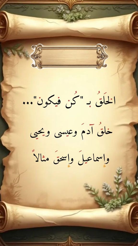 وكلمةُ “كُن” هي ذات الكلمة التي نفخها اللهُ في آدمَ من روحِه: (إِنَّ مَثَلَ عِيسَى عِنْدَ اللَّهِ كَمَثَلِ آدَمَ خَلَقَهُ مِنْ تُرَابٍ ثُمَّ قَالَ لَهُ كُنْ فَيَكُون) (59 آل عِمران). وكلمةُ اللهِ “كُن” هي التي أشارَ إليها قرآنُ الله في الآية الكريمة 27 من سورةِ لقمان: (وَلَوْ أَنَّمَا فِي الْأَرْضِ مِنْ شَجَرَةٍ أَقْلَامٌ وَالْبَحْرُ يَمُدُّهُ مِنْ بَعْدِهِ سَبْعَةُ أَبْحُرٍ مَا نَفِدَتْ كَلِمَاتُ اللَّهِ إِنَّ اللَّهَ عَزِيزٌ حَكِيمٌ). فكلمةُ اللهِ “كُن” إذاً لا نهايةَ لما بمقدورِها أن تتسبَّبَ فيه من الوقائع والأحداث التي تعجز قوانينُ الوجود كلُّها جميعاً عن التسبُّبِ فيها والتعليلِ لها.