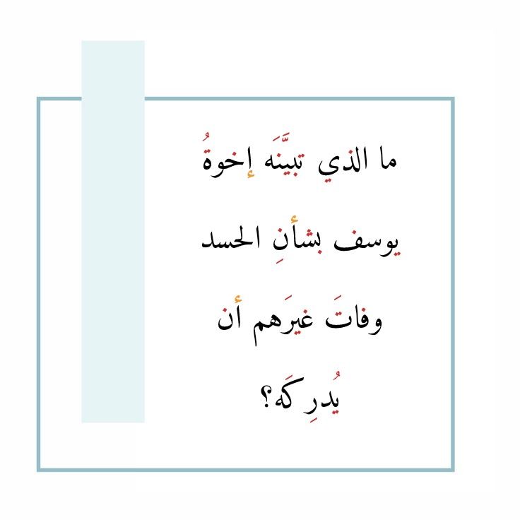 يكفلُ لنا تدبُّرُ ما تقصُّه علينا سورةُ يوسف بشأنِ علاقةِ النبي يوسف بإخوتِه أن نتبيَّنَ طورَين من أطوارِ الإنسان يمثلان رحلتَه من المعاناة، جراء القدَر الآدمي، وإلى ما بإمكانِه أن يصبحَ عليه إذا ما تابَ وآمنَ وأصلحَ فحسُنَ حالُه مع الله. فإخوةُ يوسف ما كانوا بِدعاً من البشر إذ حسدوا أخاهم وانساقوا وراء ما أمرتهم به أنفسُهم إذ زيَّنت لهم أمرَ التخلصِ منه بهذه الوسيلةِ أو تلك، حتى وإن اقتضى ذلك أن يتواطأوا على قتلِه: (لَقَدْ كَانَ فِي يُوسُفَ وَإِخْوَتِهِ آيَاتٌ لِلسَّائِلِينَ. إِذْ قَالُوا لَيُوسُفُ وَأَخُوهُ أَحَبُّ إِلَى أَبِينَا مِنَّا وَنَحْنُ عُصْبَةٌ إِنَّ أَبَانَا لَفِي ضَلَالٍ مُبِينٍ.اقْتُلُوا يُوسُفَ أَوِ اطْرَحُوهُ أَرْضًا يَخْلُ لَكُمْ وَجْهُ أَبِيكُمْ وَتَكُونُوا مِنْ بَعْدِهِ قَوْمًا صَالِحِينَ. قَالَ قَائِلٌ مِنْهُمْ لَا تَقْتُلُوا يُوسُفَ وَأَلْقُوهُ فِي غَيَابَةِ الْجُبِّ يَلْتَقِطْهُ بَعْضُ السَّيَّارَةِ إِنْ كُنْتُمْ فَاعِلِينَ) (7- 10 يوسف).