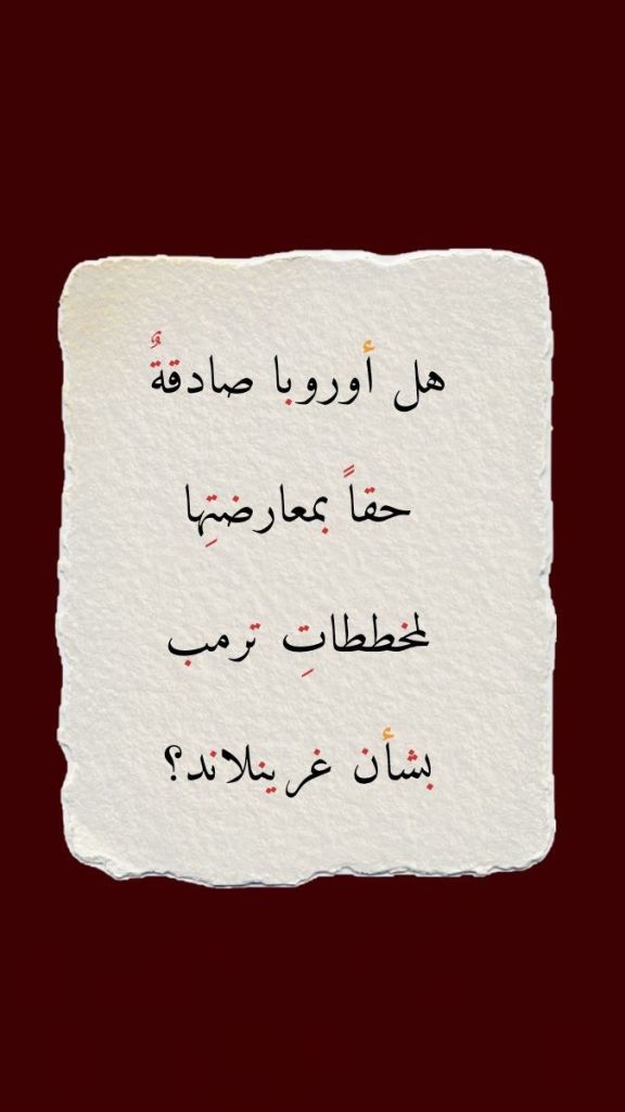 وهكذا يمكنُنا، وبكل ثقة، أن نجيبَ بالنفي القاطع على سؤال “هل أوروبا صادقةٌ حقاً في معارضتِها لمخططات ترمب بشأن غرينلاند؟”.