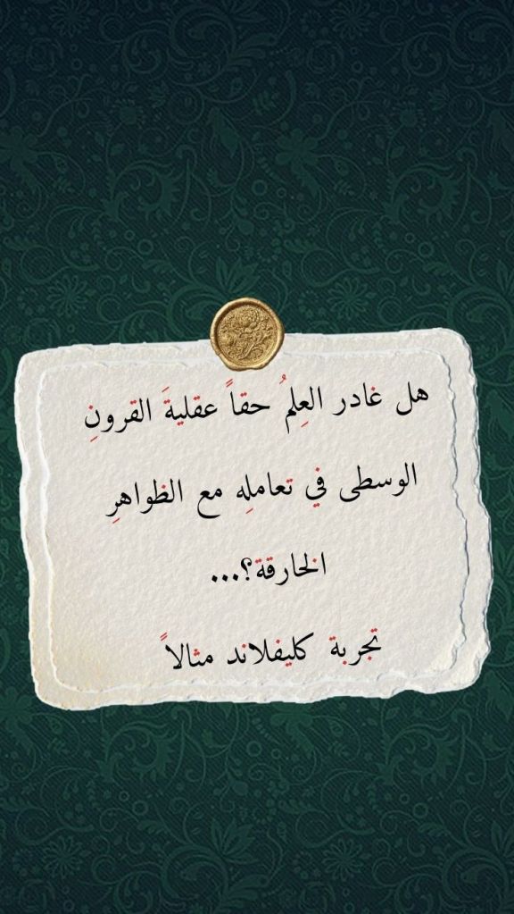 ولكن واقعَ الحالِ يُخبِرنا بشيءٍ آخر، وذلك كما يتبيَّن من تعاملِ العِلم المعاصر مع بعض الظواهر التي يجزمُ بانتفاءِ كونِها تحدثُ حقاً لا لشيءٍ إلا لأن الإقرارَ بحدوثِها يتعارض مع إيديولوجيا العِلم المعاصر التي تفترضُ استحالةَ أن يحدثَ في الوجود ما لا قدرةَ لقوانينِ هذا العِلم على تفسيرِه وفقاً لما تقضي به هذه القوانين. ومن ذلك طائفةٌ من الظواهرِ التي يُشارُ إليها عادةً بأنها “باراسايكولوجية الطابع”، وهي ظواهر شاء قدَرُها أن تذكِّرَ بمعجزاتِ الأنبياء، وكراماتِ الأولياء، وخوارقِ العادات، وذلك لفرطِ ما هي عليه من قدرةٍ على تحدِّي معارفِنا والقوانينِ التي استندنا إليها في صياغةِ وتشكيلِ عالَمِنا. وخيرُ مثالٍ على ذلك تجربةُ كليفلاند The Cleveland Experiment التي انبرى كثيرٌ من العلماء للتشكيكِ فيما تضطرُّنا إليه من ضرورةِ مراجعةِ قناعاتِنا البايولوجية والفسيولوجية التي تتحداها والتي خلُصت إليها.
