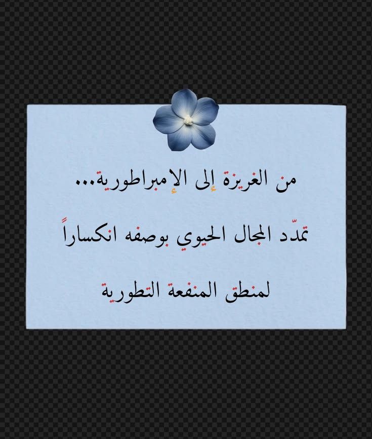 إن أخطر ما في تمدد المجال الحيوي البشري ليس اتساعه، بل وهم المشروعية الذي يصاحبه. فالقوة توهم صاحبها بأن القدرة دليل الاستحقاق، وأن الإمكان يساوي الجواز. غير أن أي منظومة أخلاقية لا تعيد فرض حدود على هذا الانفلات، إنما تترك الإنسان فريسة لقوة لا يعترف لها بسقف. وهنا يتحول التفوق إلى طغيان، والقدرة إلى تهديد للنوع نفسه. فالإنسان هو الكائن الوحيد الذي يستطيع أن يمد مجاله الحيوي إلى حد إبادة بيئته أو تهديد بقائه أو تدمير شروط استمراره. وهذا وحده كافٍ للقول إننا أمام خلل لا يمكن رده إلى منطق الانتقاء الطبيعي.