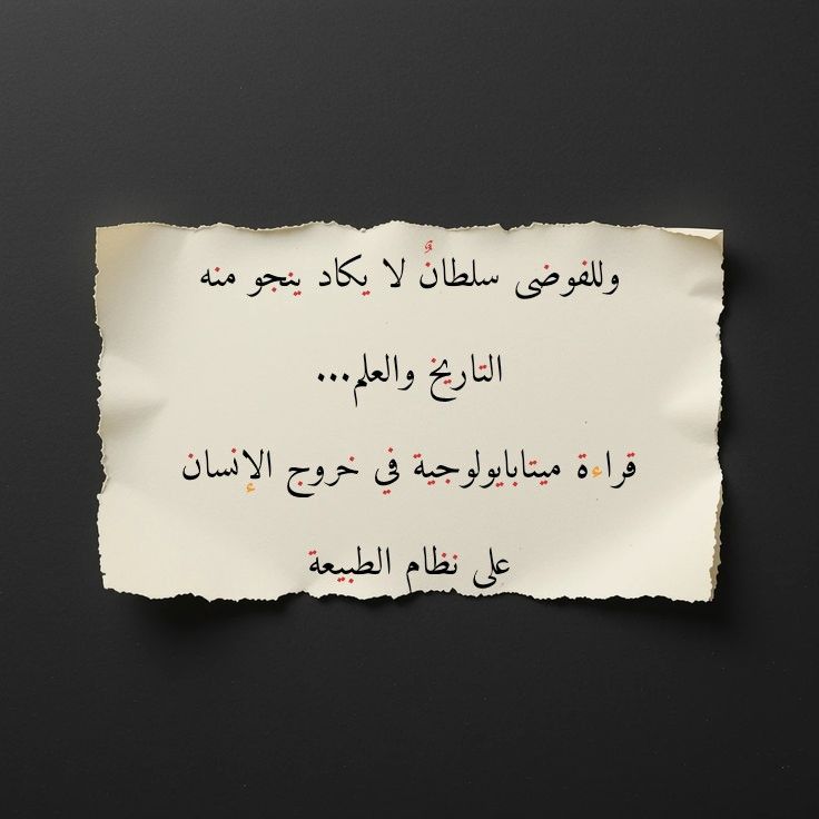 فالحضارة ليست سوى الاسم الذي نعطيه لمحاولة الإنسان المستمرة لفرض النظام على عالمٍ لا يكف عن الانفلات منه. إنها مشروعٌ هائل لتقليص الفوضى، حتى وإن كان هذا المشروع نفسه يولد أشكالاً جديدة منها. فكل نظام يقيمه الإنسان يحمل في داخله بذور اختلاله، وكل استقرار تاريخي يخفي تحت سطحه قوىً تنتظر لحظة الانفجار.