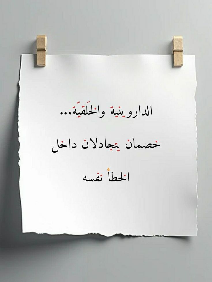 فالخلقية، على الرغم من اعتراضها على الداروينية، لا تتجاوزها معرفياً، بل تظل أسيرة السؤال الذي صاغته. فهي لا تعترض على الإطار البايولوجي للسؤال، بل تكتفي بتغيير الفاعل التفسيري. فبدلاً من الانتخاب الطبيعي يصبح الفاعل هو الخالق أو المصمم.