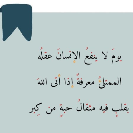 يومَ لا ينفعُ الإنسانَ عقلُه الممتلئُ معرفةً إذا أتى اللهَ بقلبٍ فيه مثقالُ حبةٍ من كِبر