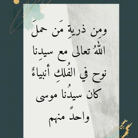 ومِن ذريةِ مَن حملَ اللهُ تعالى مع سيدِنا نوح في الفُلكِ أنبياءٌ كان سيدُنا موسى واحدً منهم