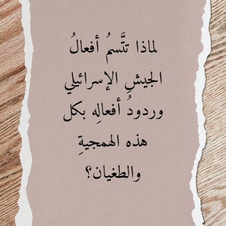 لماذا تتَّسمُ أفعالُ الجيشِ الإسرائيلي وردودُ أفعالِه بكل هذه الهمجيةِ والطغيان؟