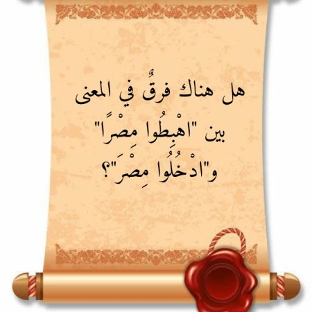 هل هناك فرقٌ في المعنى بين “اهْبِطُوا مِصْرًا” و”ادْخُلُوا مِصْرَ”؟