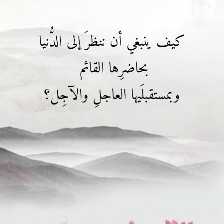 كيف ينبغي أن ننظرَ إلى الدنيا بحاضرِها القائم وبمستقبلَيها العاجلِ والآجِل؟