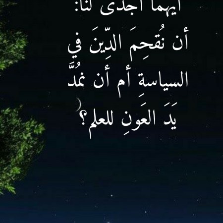 أيُّهما أجدى لنا: أن نُقحِمَ الدِّينَ في السياسةِ أم أن نمُدَّ يَدَ العَونِ للعلم؟