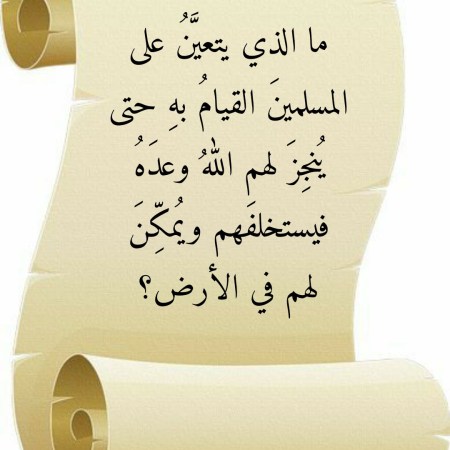 ما الذي يتعيَّنُ على المسلمينَ القيامُ بهِ حتى يُنجِزَ لهم اللهُ وعدَهُ فيستخلفَهم ويُمكِّنَ لهم في الأرض؟