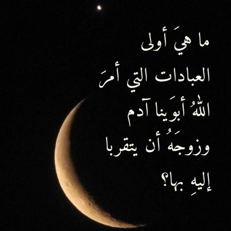 ما هي أولى العبادات التي أمرَ اللهُ أبوَينا آدم وزوجَه أن يتقرَّبا إليهِ بها؟