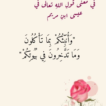 في معنى قَولِ اللهِ تعالى في عيسى ابنِ مريم “وَأُنَبِّئُكُمْ بِمَا تَأْكُلُونَ وَمَا تَدَّخِرُونَ فِي بُيُوتِكُمْ”