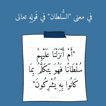 في معنى “السُّلطان” في قَولِهِ تعالى “أَمْ أَنْزَلْنَا عَلَيْهِمْ سُلْطَانًا فَهُوَ يَتَكَلَّمُ بِمَا كَانُوا بِهِ يُشْرِكُونَ”