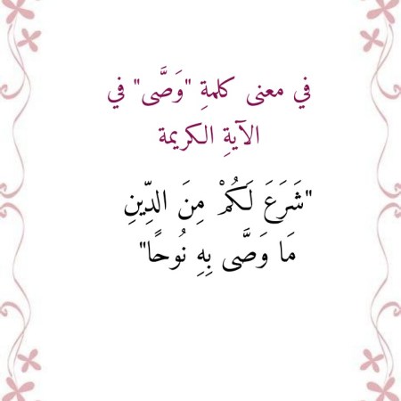 في معنى كلمةِ “وَصَّى” في الآيةِ الكريمة “شَرَعَ لَكُمْ مِنَ الدِّينِ مَا وَصَّى بِهِ نُوحًا”
