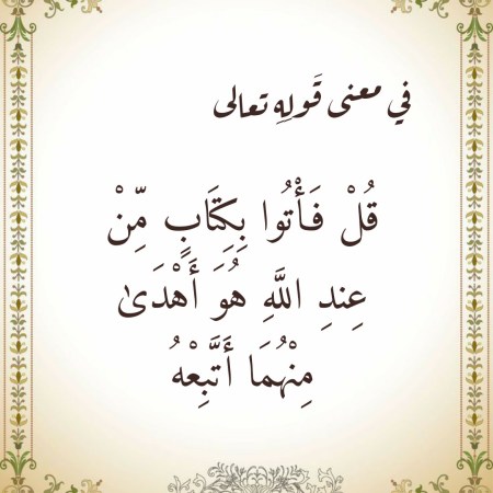 في معنى قَولِهِ تعالى “قُلْ فَأْتُوا بِكِتَابٍ مِّنْ عِندِ اللَّهِ هُوَ أَهْدَىٰ مِنْهُمَا أَتَّبِعْهُ”