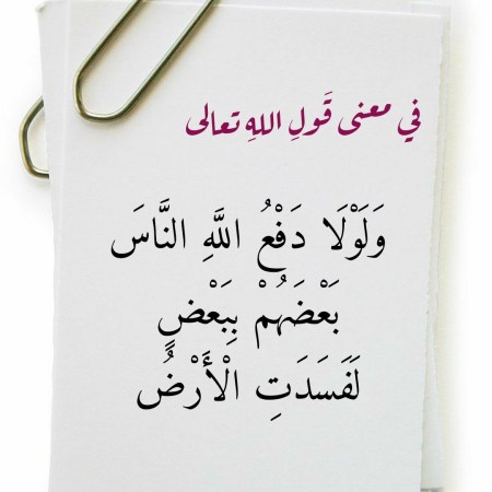 في معنى قَولِ اللهِ تعالى “وَلَوْلَا دَفْعُ اللَّهِ النَّاسَ بَعْضَهُمْ بِبَعْضٍ لَفَسَدَتِ الْأَرْضُ”