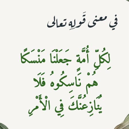 في معنى قَولِهِ تعالى “لِكُلِّ أُمَّةٍ جَعَلْنَا مَنْسَكًا هُمْ نَاسِكُوهُ فَلَا يُنَازِعُنَّكَ فِي الْأَمْرِ”