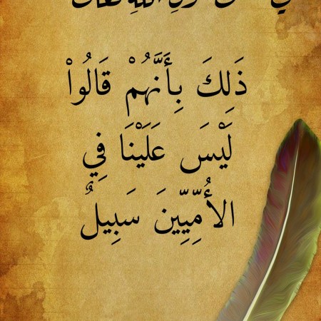 في معنى قَولِ اللهِ تعالى “ذَلِكَ بِأَنَّهُمْ قَالُواْ لَيْسَ عَلَيْنَا فِي الأُمِّيِّينَ سَبِيلٌ”