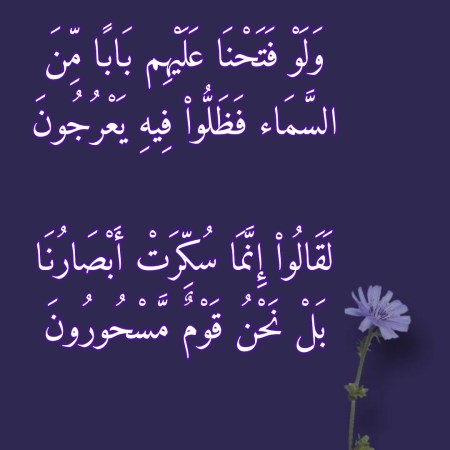 في معنى “وَلَوْ فَتَحْنَا عَلَيْهِم بَابًا مِّنَ السَّمَاء فَظَلُّواْ فِيهِ يَعْرُجُونَ. لَقَالُواْ إِنَّمَا سُكِّرَتْ أَبْصَارُنَا بَلْ نَحْنُ قَوْمٌ مَّسْحُورُونَ”