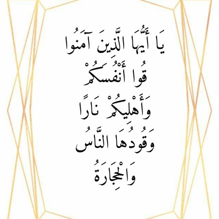 في معنى قَولِ اللهِ تعالى “يَا أَيُّهَا الَّذِينَ آمَنُوا قُوا أَنْفُسَكُمْ وَأَهْلِيكُمْ نَارًا وَقُودُهَا النَّاسُ وَالْحِجَارَةُ”
