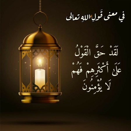في معنى قَولِ اللهِ تعالى “لَقَدْ حَقَّ الْقَوْلُ عَلَىٰ أَكْثَرِهِمْ فَهُمْ لَا يُؤْمِنُونَ”