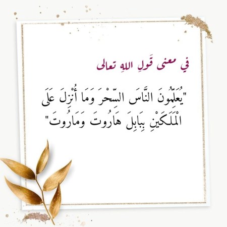 في معنى قَولِ اللهِ تعالى “يُعَلِّمُونَ النَّاسَ السِّحْرَ وَمَا أُنْزِلَ عَلَى الْمَلَكَيْنِ بِبَابِلَ هَارُوتَ وَمَارُوتَ”