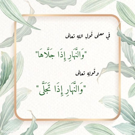 في معنى قَولِ اللهِ تعالى “وَالنَّهَارِ إِذَا جَلَّاهَا” وقَولِهِ تعالى “وَالنَّهَارِ إِذَا تَجَلَّى”