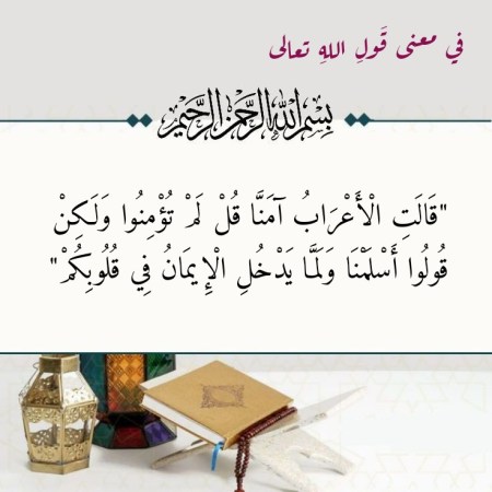 في معنى قَولِ اللهِ تعالى “قَالَتِ الْأَعْرَابُ آمَنَّا قُلْ لَمْ تُؤْمِنُوا وَلَكِنْ قُولُوا أَسْلَمْنَا وَلَمَّا يَدْخُلِ الْإِيمَانُ فِي قُلُوبِكُمْ”